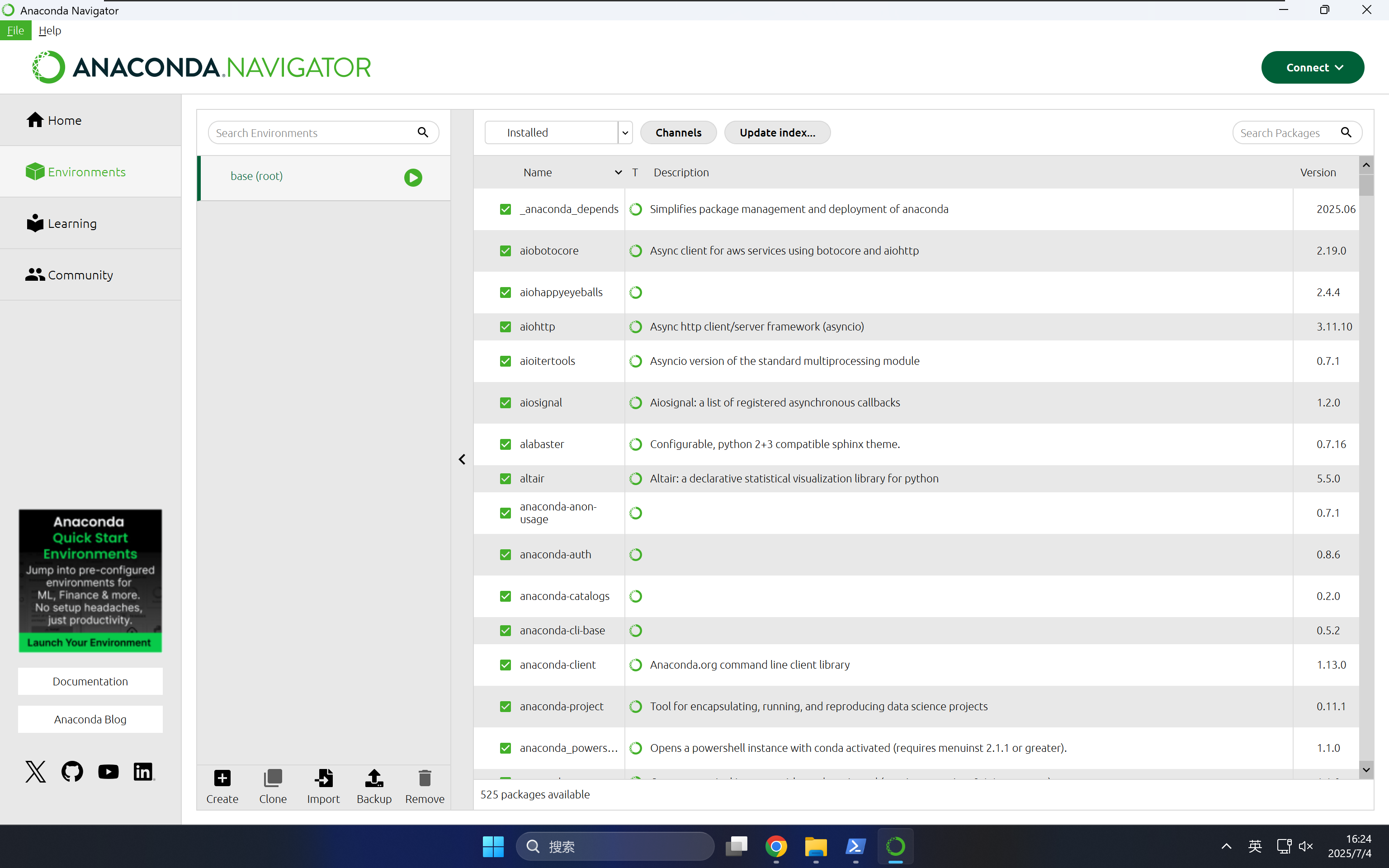 另外还可以使用Anaconda Navigator对环境进行管理,如图打开Anaconda Navigator 。