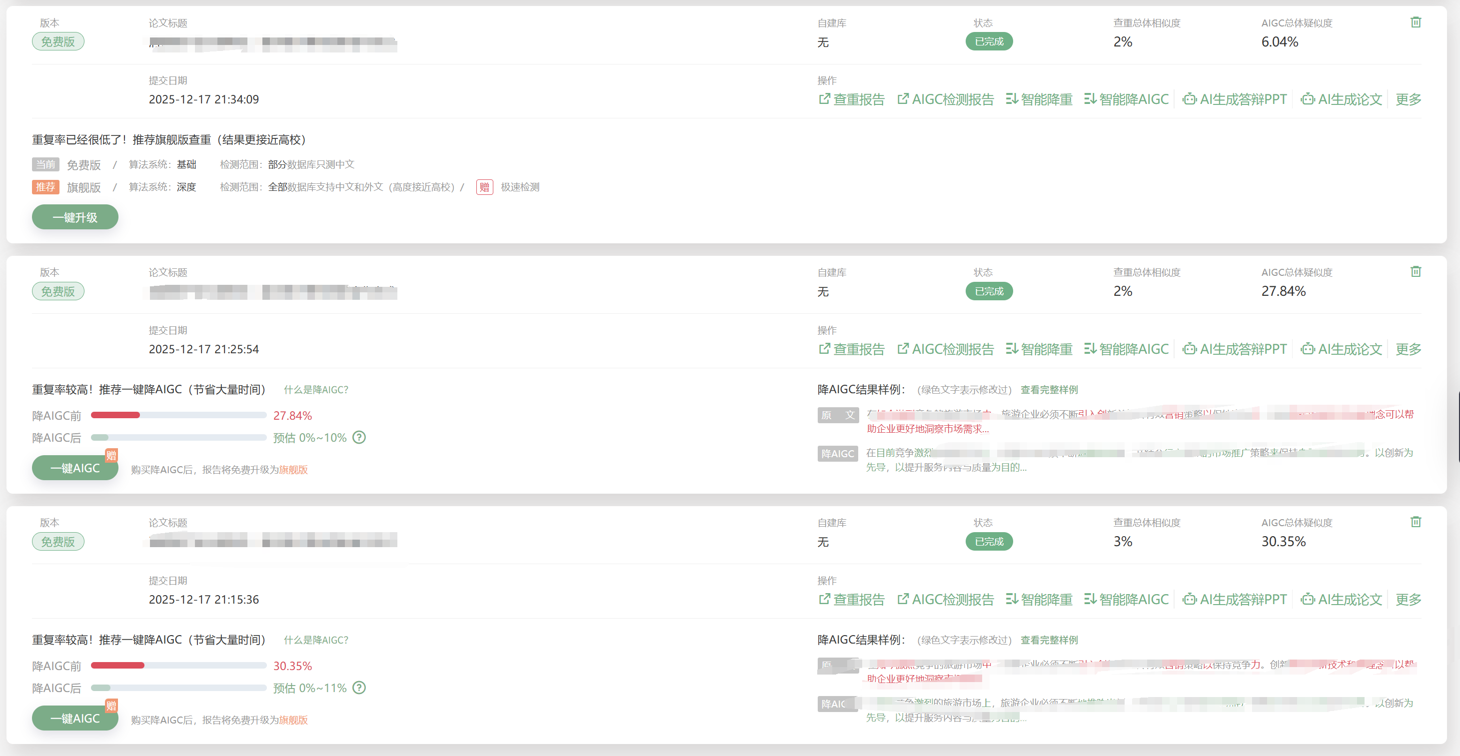 根据新的结果再次让AI修改句子,重复操作直到AI率降到满意。实测有效: