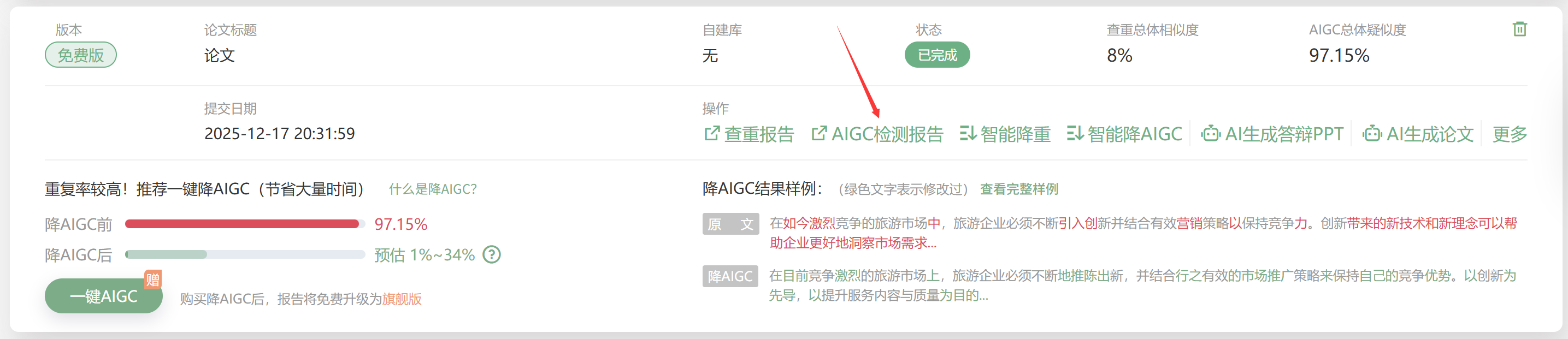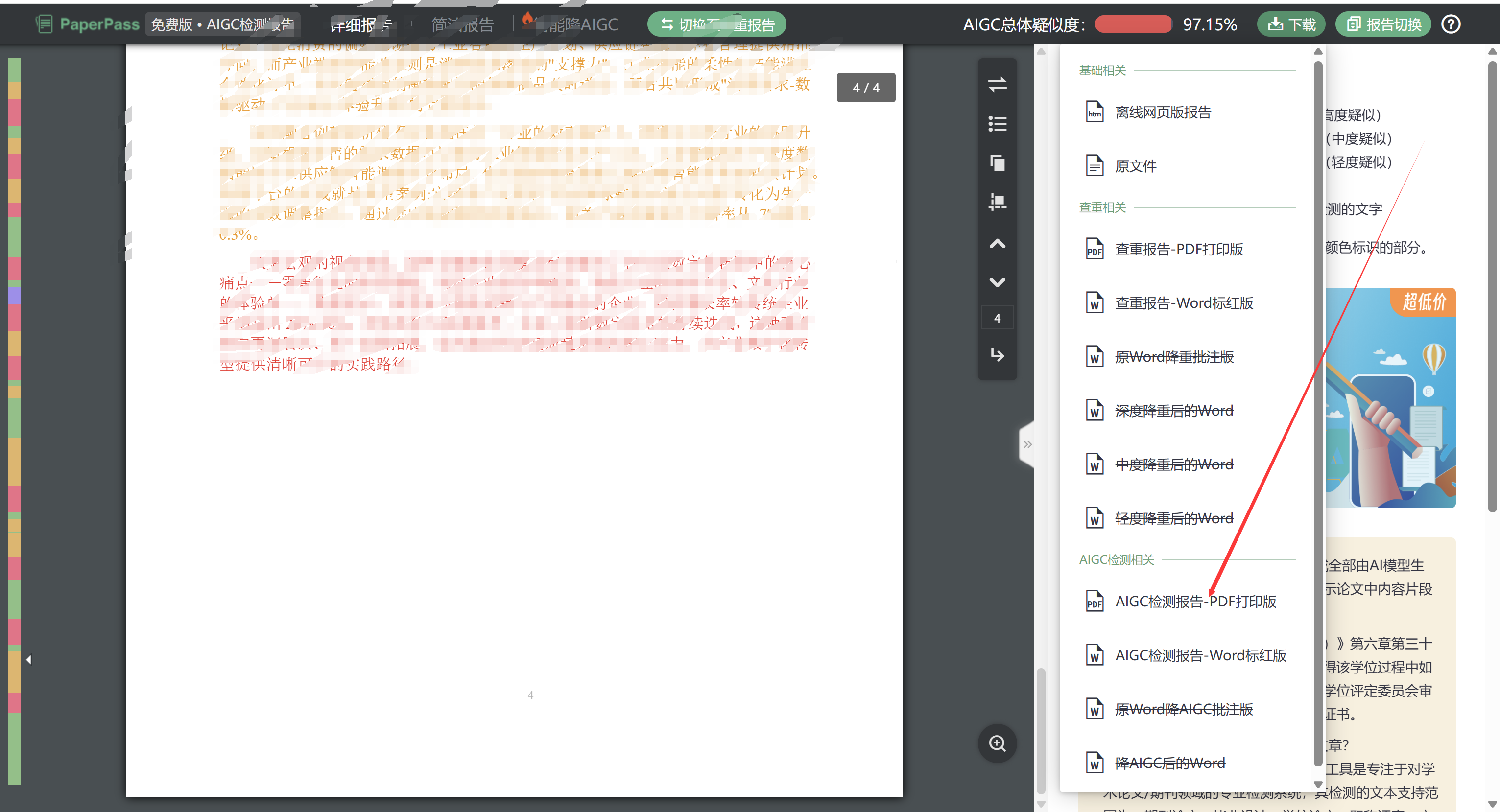 首先将原文上传给Paperpass,这是AI率会非常高,不用在意,我们先下载报告: